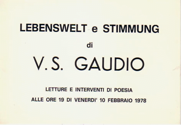 Nel consegnare i testi rielaborati ai curatori di “By Logos”, allegasti anche questa esplicazione metodologica che non è stata, giustamente, pubblicata nel volume, altrimenti sarebbe stato svelato a tutto il mondo che il loro “Espo-Esproprio Transpoetico” non era altro che un “espo-esproprio” della Stimmung che, in quegli anni, V.S. Gaudio aveva elaborato come genere poetico, o transpoetico: